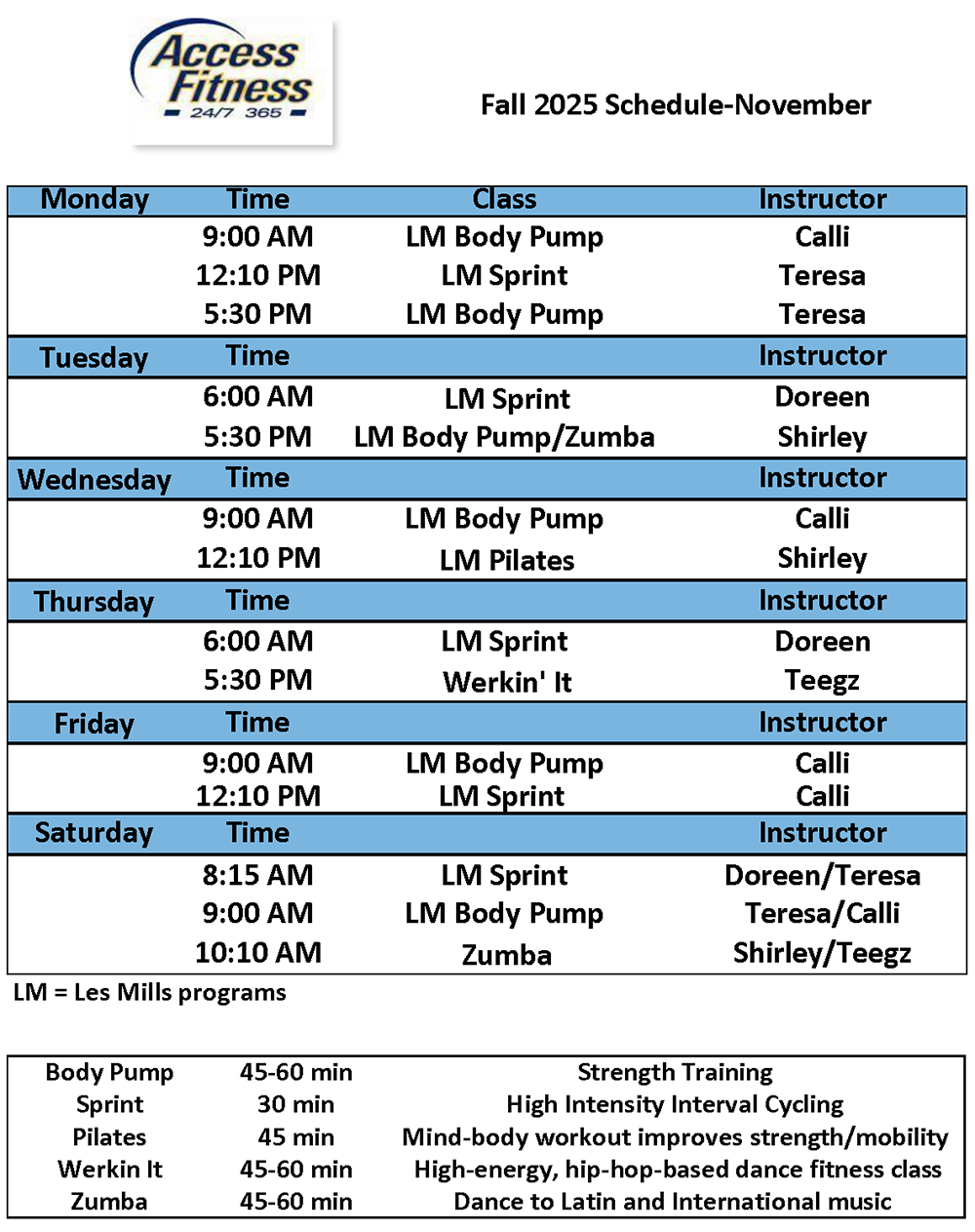 Bozeman Access Fitness Schedule